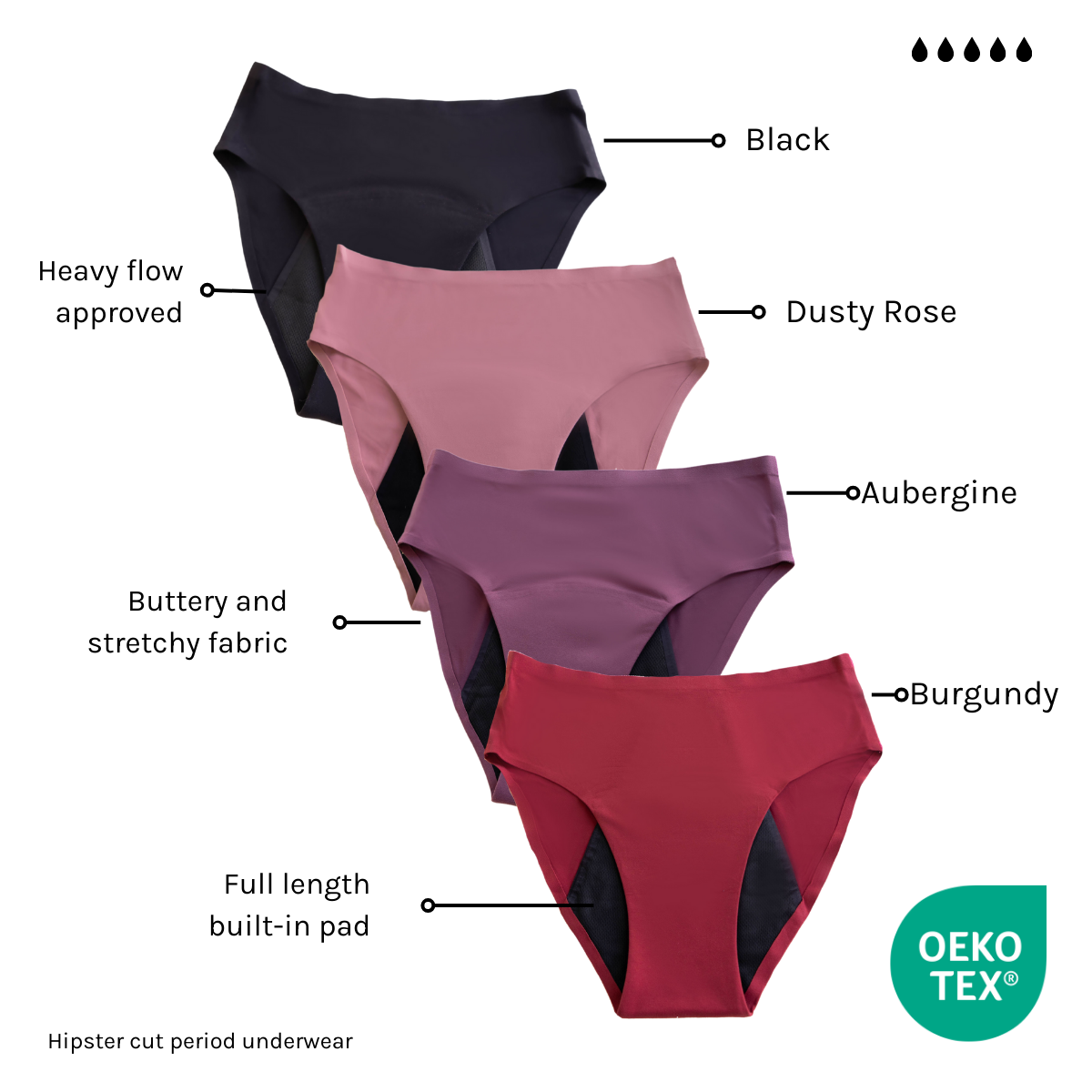 Our Flow Freedom period panties are comfy, eco-friendly, and built for heavy flow days. With enough protection for up to 3 tampons (50 ml capacity), they’ve got you covered all cycle long, even on your heaviest days.